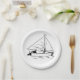 Uma ilustração de esboço de veleiro na água. Este design parece realmente eficaz nestas placas de papel
