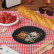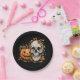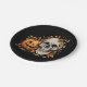 Serve up frightful fun with these festive Halloween paper plates! Featuring a spooky skull and smiling jack-o’-lantern surrounded by fall leaves and orange flowers, this hauntingly stylish design sets the perfect mood for your celebration. The bold orange and black spooky design make it ideal for any Halloween table setting.