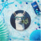 Playful twist to cute animal art and humor with a quirky white llama rocking teal glasses and holding a leafy branch.