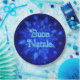 Um enxame de flocos de neve fractais azuis. O texto italiano "Buon Natale" aparece em azul e branco brilhantes.