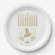 Prato De Papel Soberana Dourada Dove Menorah Hanukkah