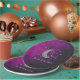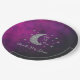 Sobre o chá de fraldas da lua com lua de prata e estrelas contra um fundo negro e rosa do céu noturno roxo