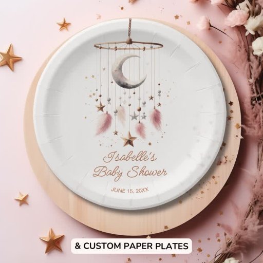 Sobre a Lua Boho Celestial Chá de fraldas Placas de Papel Personalizadas
