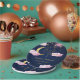 Estas placas de papel cor-de-rosa "Over the Moon" apresentam um design celestial sonhador. As placas exibem um fundo cor-de-rosa macio com uma lua crescente dourada brilhante no centro, cercado por estrelas douradas cintilantes. As nuvens cor-de-rosa fofinhas acrescentam um toque caprichoso, melhorando o tema do sonho, do céu noturno. Os sotaques dourados tornam o design elegante, enquanto os tons cor-de-rosa pastel trazem uma sensação macia e lúcida, fazer essas placas o complemento perfeito para uma celebração do chá de fraldas temático "Sobre a Lua".