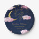 Prato De Papel Sobre o chá de fraldas rosa das estrelas da Lua