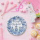 Prato De Papel Soldados Florais Brancos Chinoiserie Azul