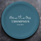 O Sr. e a Sra. Elegante Simple Canoe Blue Paper Plates são uma escolha na moda e personalizada para o seu evento especial. Estes pratos apresentam um design impressionante com um fundo azul de canoa e são personalizados com seu nome de família e data do casamento. Estas placas são perfeitas para adicionar um toque personalizado à sua recepção de casamento ou aniversário.
