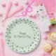 These festive St. Patrick’s Day Shamrock Border Round Paper Plates feature hand-drawn green clover borders along the edge for a clean, classic Irish look. Green background. Centered on the plate is an editable “Happy St. Patrick’s Day” greeting printed on the front for a polished party presentation.