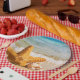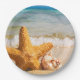Prato De Papel Starfish e Seashells na praia