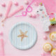 Inspirado pela Flórida costeira. Personalize nossas placas de papel de listras azuis para sua festa na praia, festa da sereia, sob a festa do mar, etc.