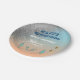 O fundo tem brilho prateado no lado e um fundo azul claro e cor de pêssego/laranja claro. O fundo é meu. Você pode mudá-lo com ferramentas Zazzle.