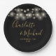 Prato De Papel String Lights Script Dourado Casamento Preto