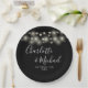 Chapas de papel preto e branco legantes com luzes bonito de cordas, nomes de estilo de assinatura e data especial de casamento. Projetado por Thisnotme©
