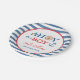 Prato De Papel Striped Blue Red Nautical Ahoy Boy Baby Shower