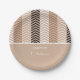 Placas de papel em forma de padrão variegadas sofisticadas em chevron castanho com tiras de listras de castanho, castanho e bege. Personalize este elegante design zigzag adicionando o nome do convidado de honra para trazer um olhar elegante e refinado ao estilo do seu partido.