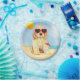 É a vida de um cão! Tenha legal e comemore os dias de verão do cão com este lindo Cocker Spaniel vestindo óculos escuros e relaxando com uma bebida.