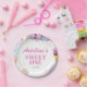 Serve your party treats in style with these "Sweet One" paper plates! Featuring a whimsical donut, candy and sprinkle design in soft pastel colors, these plates are perfect for your baby's first birthday celebration. Durable and decorative, they match your sweet-themed party stationery perfectly. Easy to customize with your little one's name.