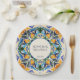 Vintage azul e castanho colorido azulejos mexicanos talavera azulejo pratos de papel impressos personalizados pratos de papel monograma decoração de recepção de casamento decoração personalizada de mesa de casamento