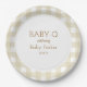 Tan gingham circular baby shower plate