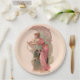Elegante Art Nouveau, figura feminina com lua e flores em rosa antigo.