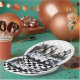 Conjunto de oito placas de papel de 9 polegadas com uma imagem antiga Alice no País das Maravilhas de Alice no chá de Mad Hatter com a Marcha Hare, e Dormouse em um prato de damas preto e cinza. Veja pote de doces, espresso, arremessador, bule de chá e portas copos correspondentes. Veja toda a coleção Wonderland Plate na COMIDA/BEV | Seção pratos.