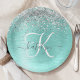 Prato De Papel Teal Brugado Metal Silver Glitter Nome Monograma