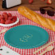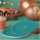 Criar pratos personalizados de papel de casamento. Possui um Rosa Teal juntamente com o nome do casal de casamento e a data do casamento. Basta mudar o texto para ajustado das suas necessidades. Use a modelo para personalizar.