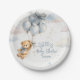 Designed to match a complete teddy bear baby shower setup, this paper plate helps create a sweet and memorable party atmosphere. The soft watercolor style, adorable little bear illustration, and dreamy cloud accents make the celebration feel extra special while welcoming a precious baby boy.
