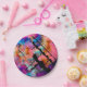 Uma imagem fractal de cor brilhante (laranja, azul, rosa, amarela, preta), altamente abstrato.