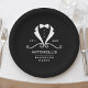 Eleve a sua celebração pré-casamento com estes elegantes pratos de papel para despedida de solteiro. Com um design de smoking preto e branco elegante e uma silhueta sofisticada de gravata borboleta, este é o máximo em decoração para despedida de solteiro para uma noite de luxo e sofisticação para o noivo. São uma forma única de tornar o seu evento exclusivamente seu. O design é totalmente personalizável para incluir o nome do noivo e todos os detalhes do seu evento, tornando-os perfeitos para qualquer padrinho ou planejador de casamentos que procure adicionar um toque sofisticado e distinto a uma despedida de solteiro ou celebração sofisticada.