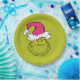 This fantastic, bold illustration is a close-up portrait of the Grinch in full mischievous mode! He has his signature sly grin and bright yellow eyes, but his look is updated with a large, fluffy Santa hat in a fun, unexpected pink/fuchsia color instead of the traditional red. This graphic is perfect for anyone who loves the holidays but embraces a non-traditional, delightfully grumpy, and colorful style!