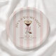 Bonita, sofisticada e divertida, esta placa de festa de aniversário apresenta o popular tema espresso martini. O martini é tocado com uma camada espumosa de espuma e grãos de café e é amarrado com um arco de chiffão rosa num fundo listrado de cor rosa feminina e bege de marfim. Estes detalhes contribuem para a compreensão e a celebração, além de terem um olhar retrógrado e uma sensação! Personalize este guardanapo de aniversário muito especial com o nome do seu convidado de honra e a data da festa. As placas estão disponíveis em 2 tamanhos: mostradas aqui no tamanho menor de 7 polegadas de diâmetro para bolo e pequenos itens, elas também estão disponíveis com 9 polegadas de diâmetro.