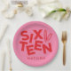 Moderna e mínima tipografia ousada, 16 anos, vermelho e cor-de-rosa decor, favorece design de placa de papel.