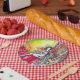 PRATO DE PAPEL TITÂNIA SENTADA NUMA FLORESTA VERMELHA