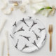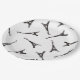 Conjunto de oito placas de papel de 9 polegadas com uma imagem de torres Eiffel pretas em branco. Ver pote de doces, copo espresso, frasco, lançador, bule e portas copos correspondentes. Veja toda a coleção de Placas de Cancelamento na COMIDA/BEV | Seção pratos.