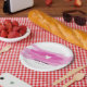 Prato De Papel Traços de Tinta Simples e Casamento de Coração