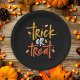 Trick ou Tratat Candy Corn Halloween Plates apresenta o tipo de pincel divertido e ilustrações bonitinhas de milho doce.
