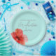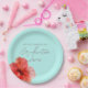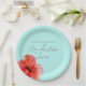 Lindo prato de luau tropical floral de cor d'água com um hibisco vermelho.