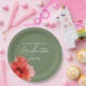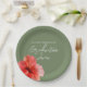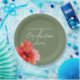 Lindo prato de luau tropical floral de cor d'água com um hibisco vermelho.