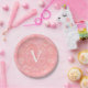 Prato De Papel Tulip Rosa Monograma Aquarela