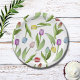 O design do produto apresenta um padrão de flores tulipas coloridas em roxo, vermelho, rosa, azul e amarelo. Esta ilustração botânica faz placas de papel modernas e únicas para seu aniversário, Páscoa, Dia de as mães ou festa de casamento.