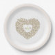 Coração de tulipas de primavera floresce pratos de papel de casamento. Adicione as suas iniciais de monograma de casais. Em tinta castanha com flores de creme esbranquiçado, folhagem verde em branco. Outras cores e itens de casamento correspondentes disponíveis. Solicitações de cor também estão disponíveis. © Tinta original e design por Sarah Trett para www.mylittleedenweddings.com no Zazzle.