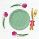 Prato De Papel Tulipas e borboletas Padrão Verde