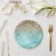Prato De Papel Turquesa Aqua Dourado Glitter Sparkle