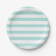 Prato De Papel Turquesa Claro e Listrado Horizontal Largo Branco