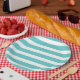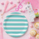 Prato De Papel Turquesa e Stripes Brancas