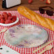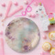 Prato De Papel Turquesa Roxa Floral