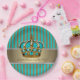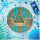 Coroa azul-turquesa e príncipe-dourado com bonito turquesa e chapas de papel listradas de ouro. Você pode personalizar com texto no estilo de fonte de sua escolha.