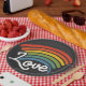 Um Arco-Íris do Amor, este design apresenta um arco-íris colorido com a palavra "Amor".