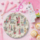 Conjunto de oito placas de papel de 9 polegadas com uma imagem de mulheres portentosas que desfrutam de um dia maravilhoso no cheio de Paris de comprar, jantar e ver a vista. Ver pote de doces correspondente, espresso, caneca, frasco, lançador, bule e portas copos. Veja toda a coleção de Placas de Cancelamento na COMIDA/BEV | Seção pratos.